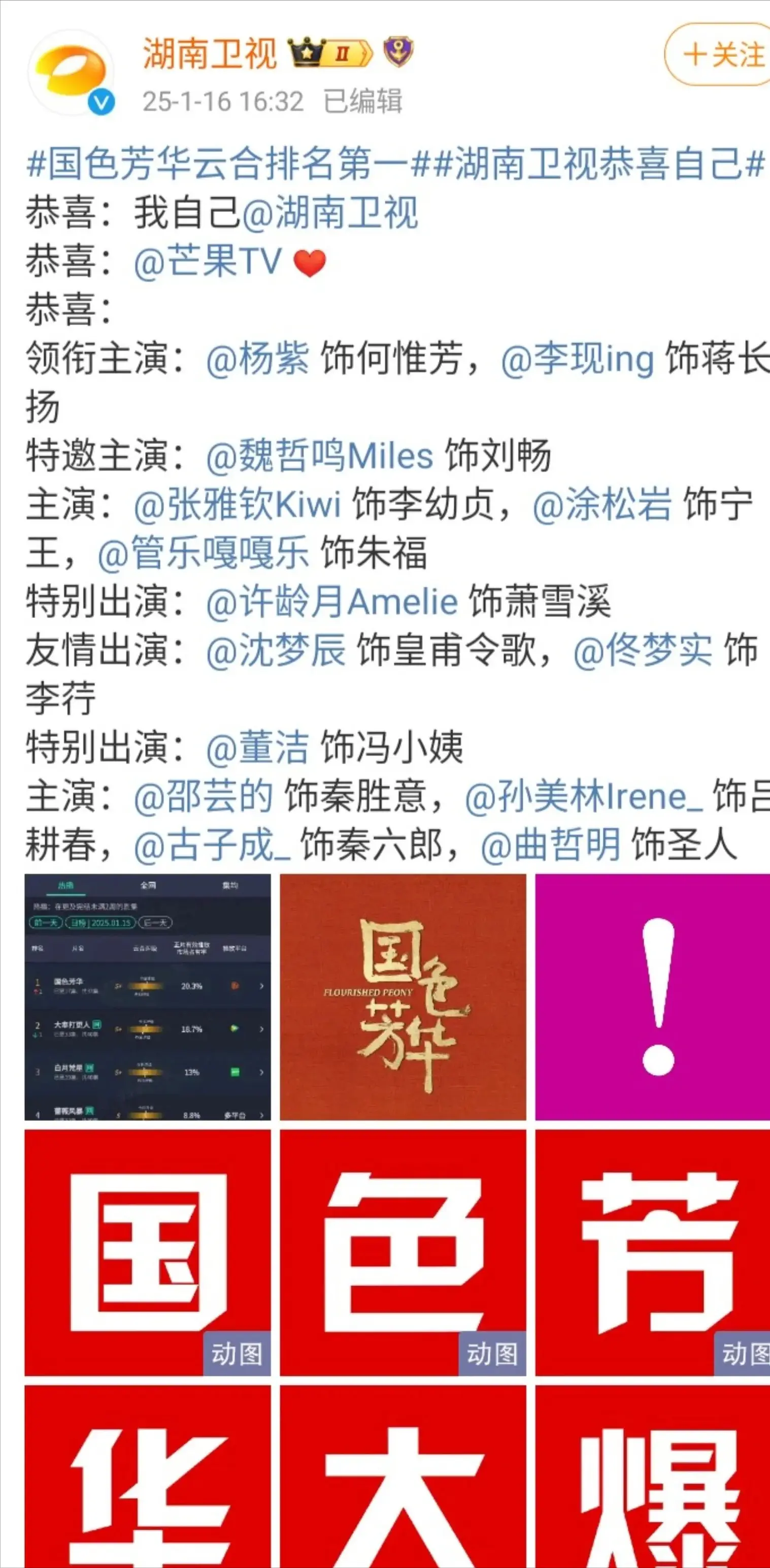 《国色芳华》在对打中成为最大赢家,实现了热度与口碑的双丰收。让日活量垫底的芒果tv也翻身,一整个扬眉吐气,湖南卫视高调恭喜自己,这波对打胜负已定。